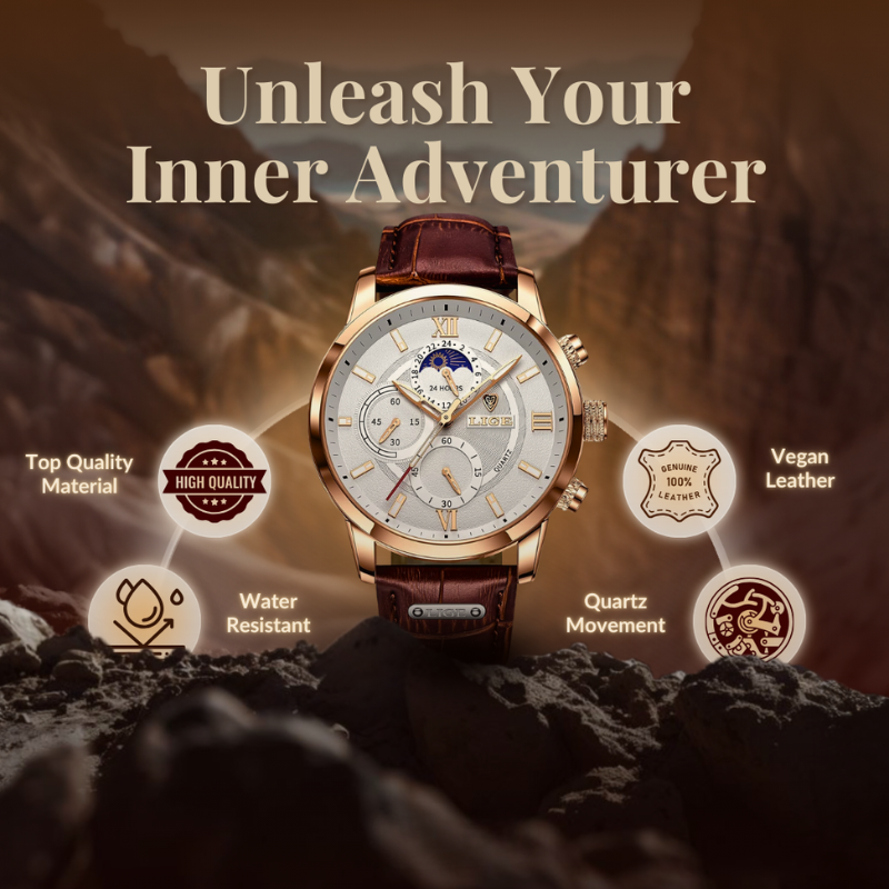 The classic sports watch is here to meet your needs with its elegant design and practical features. Whether you want to time your workout or simply keep your day on track, this watch has it all. The top button allows you to start and pause the stopwatch, the crown in the middle helps you adjust the time, and the bottom button resets the stopwatch to zero-which makes it both functional and user-friendly.